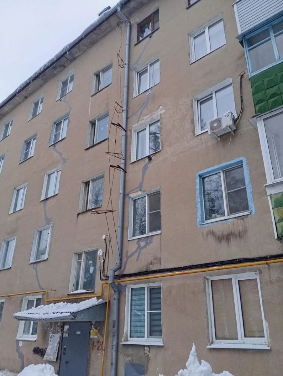 В Рязани жильцы жалуются на висящую с крыши металлическую конструкцию