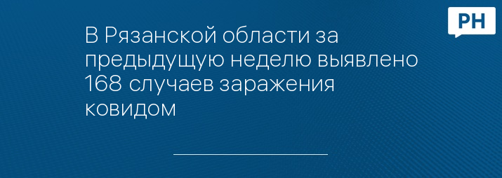 В Рязанской области за предыдущую неделю выявлено 168 случаев заражения ковидом