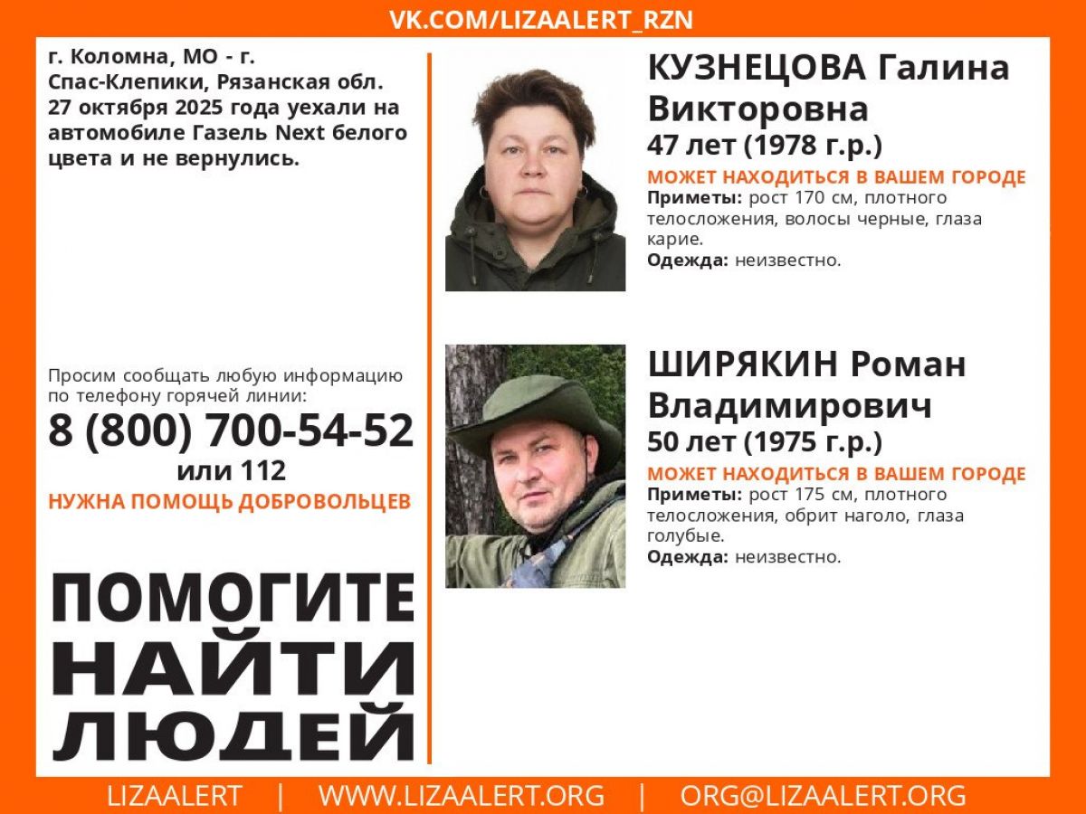 В Рязанской области разыскивают пропавших жителей Коломны