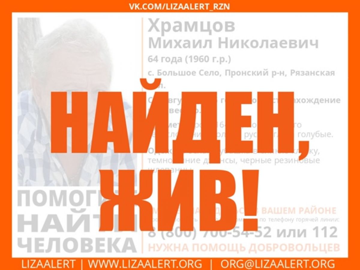 В Рязанской области волонтёры прекратили поиски пропавшего в селе Большое Село Пронского района 64-летнего Михаила Храмцова. Об этом сообщили в ПСО «Лиза Алерт».