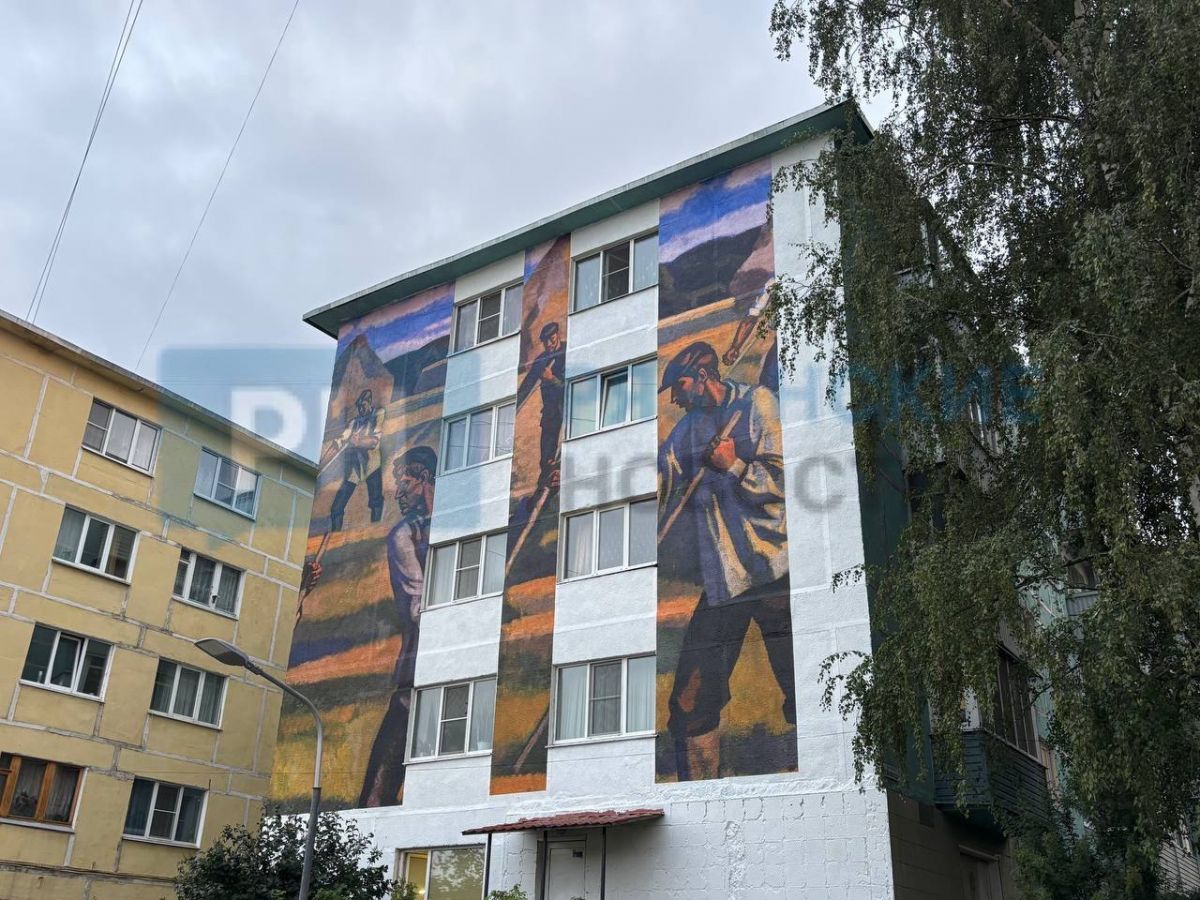 На фасаде дома в центре Рязань создали новый мурал с фрагментом картины Виктора Иванова «Косцы» 1991 года.