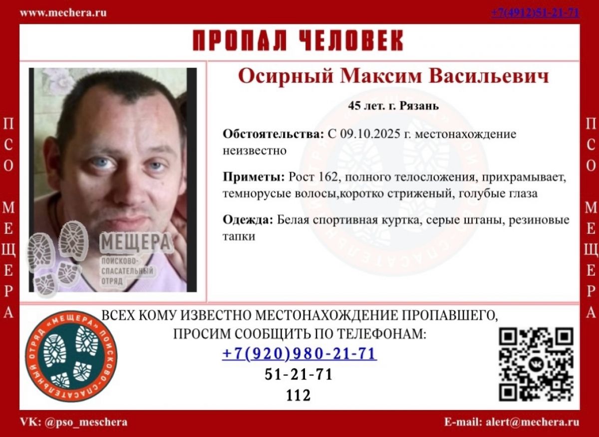 Осирный Максим, 45-ти лет от роду, перестал выходить на связь 9 октября, в четверг, и его настоящее местонахождение до сих пор остается невыясненным.