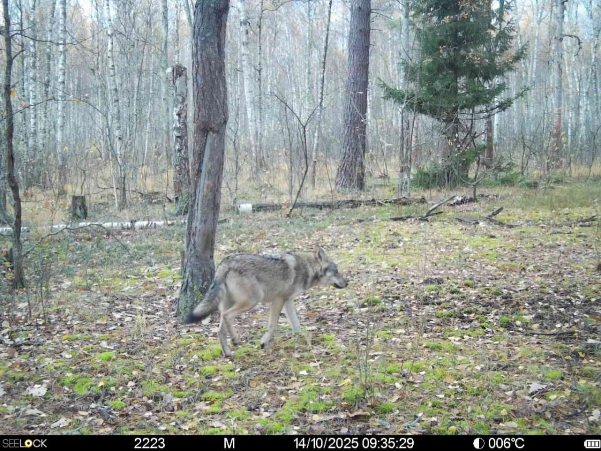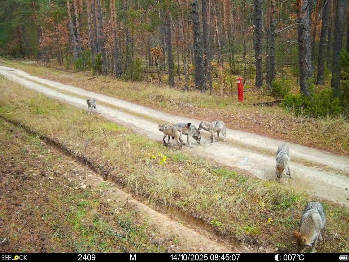 На камеры удалось запечатлеть зубрицу с маленьким теленком, стаю волков, кабана, одинокого волка, лису и лося.