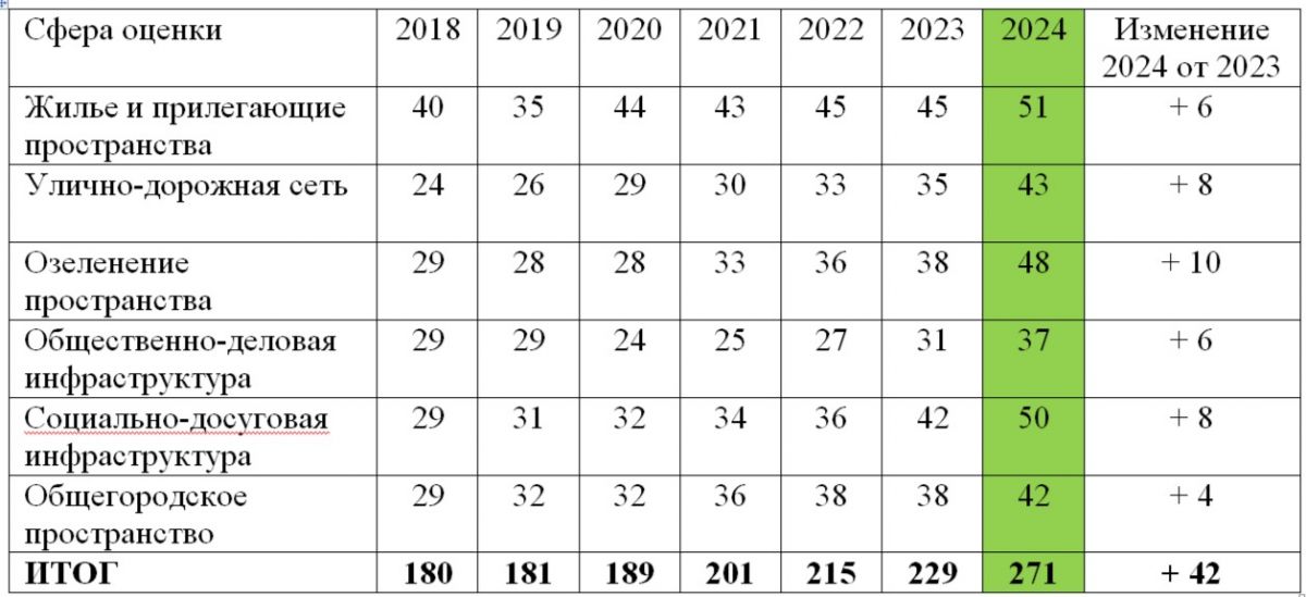 Рязань показала положительную динамику по всем 36 критериям. Индекс формируется с 2018 года. Тогда для Рязани составлял 180 баллов, в 2023 году - 229 баллов, а в 2024 году - 271 балл. Что показывает высокую результативную работу, проведенную за последние два года.