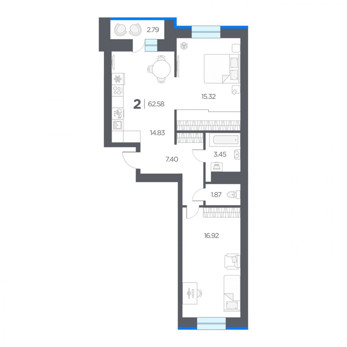 Так, семья с 1 ребенком может приобрести 1-комнатную квартиру 40,15 м2 с изолированной спальней, просторной кухней и увеличенной гостевой зоной, где можно организовать пространство для детских игр. Платеж по ставке 3,5% составит всего 16 702 руб/мес.