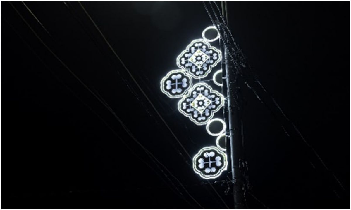 Так же в оформление входят комплект гирлянд для деревьев, световой шлейф, светодиодные лампы.