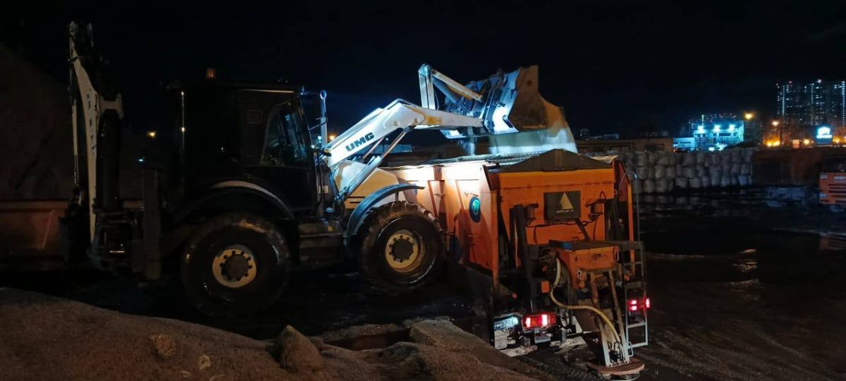 Для обеспечения безопасности водителей на покрытия было нанесено 172 тонны реагента и 24 кубометра песко-соляной смеси.