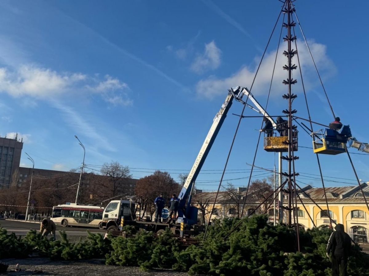 В Рязани приступили к монтажу главной городской ели на площади Ленина. Об этом сообщает пресс-служба мэрии.