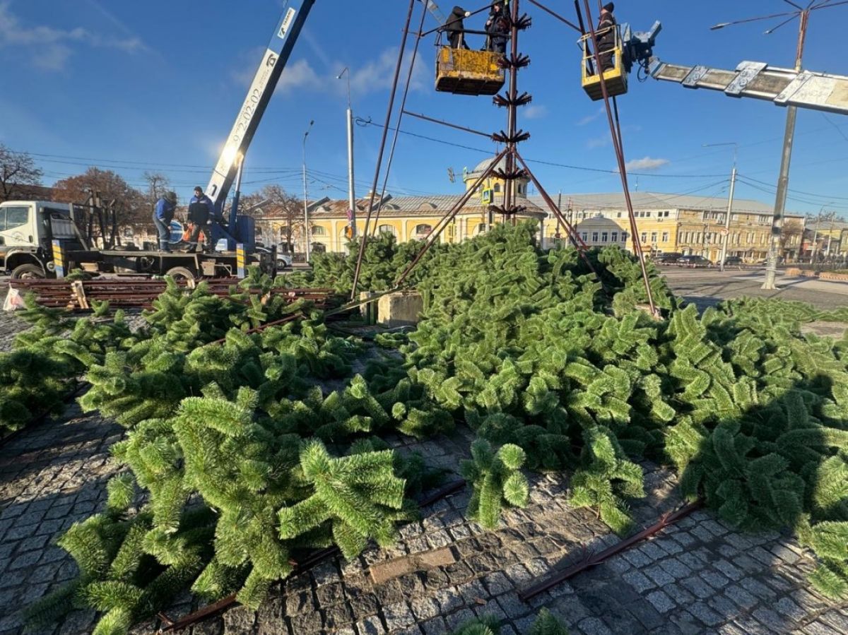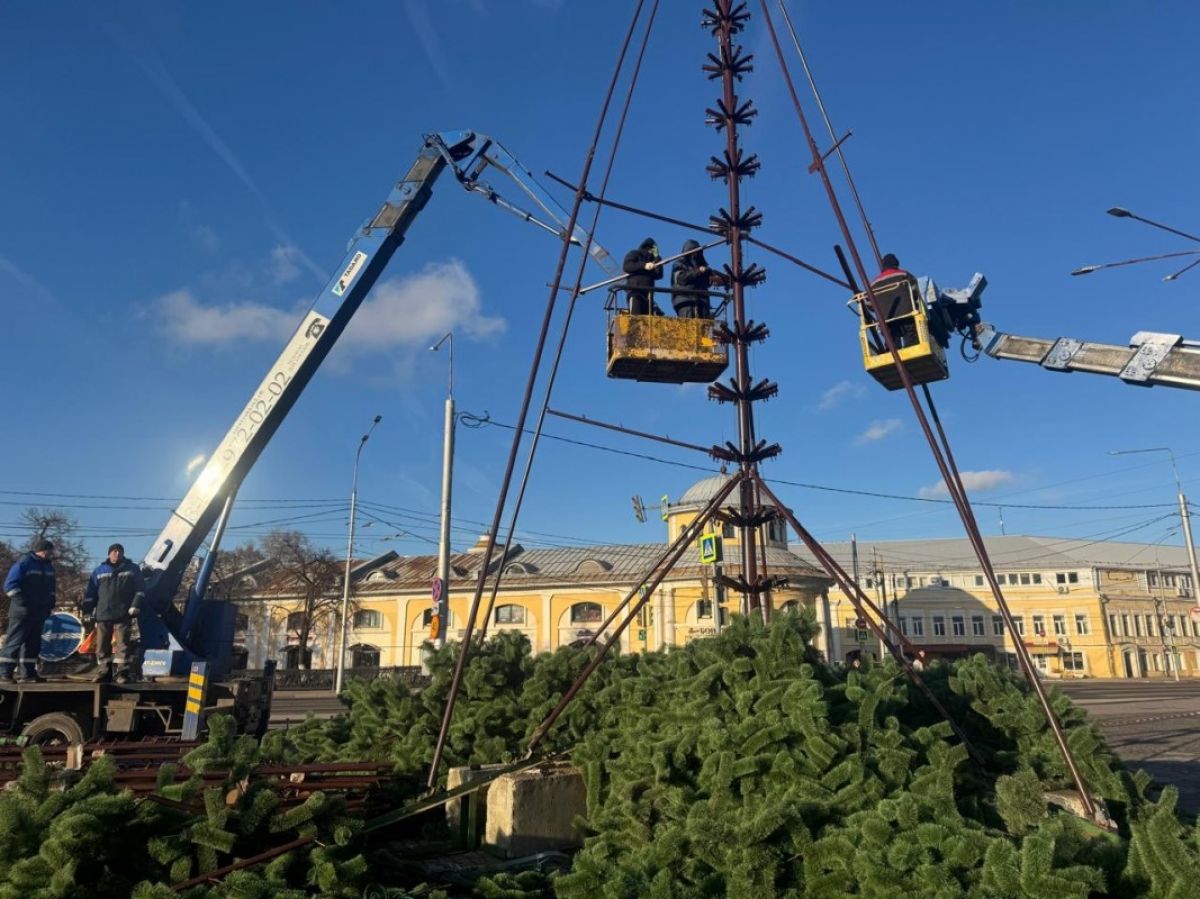 На площади Ленина в Рязани начали монтировать главную городскую ель