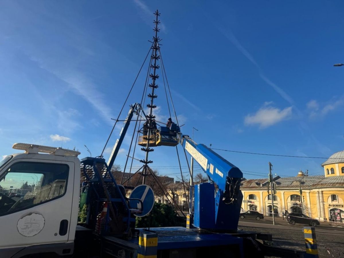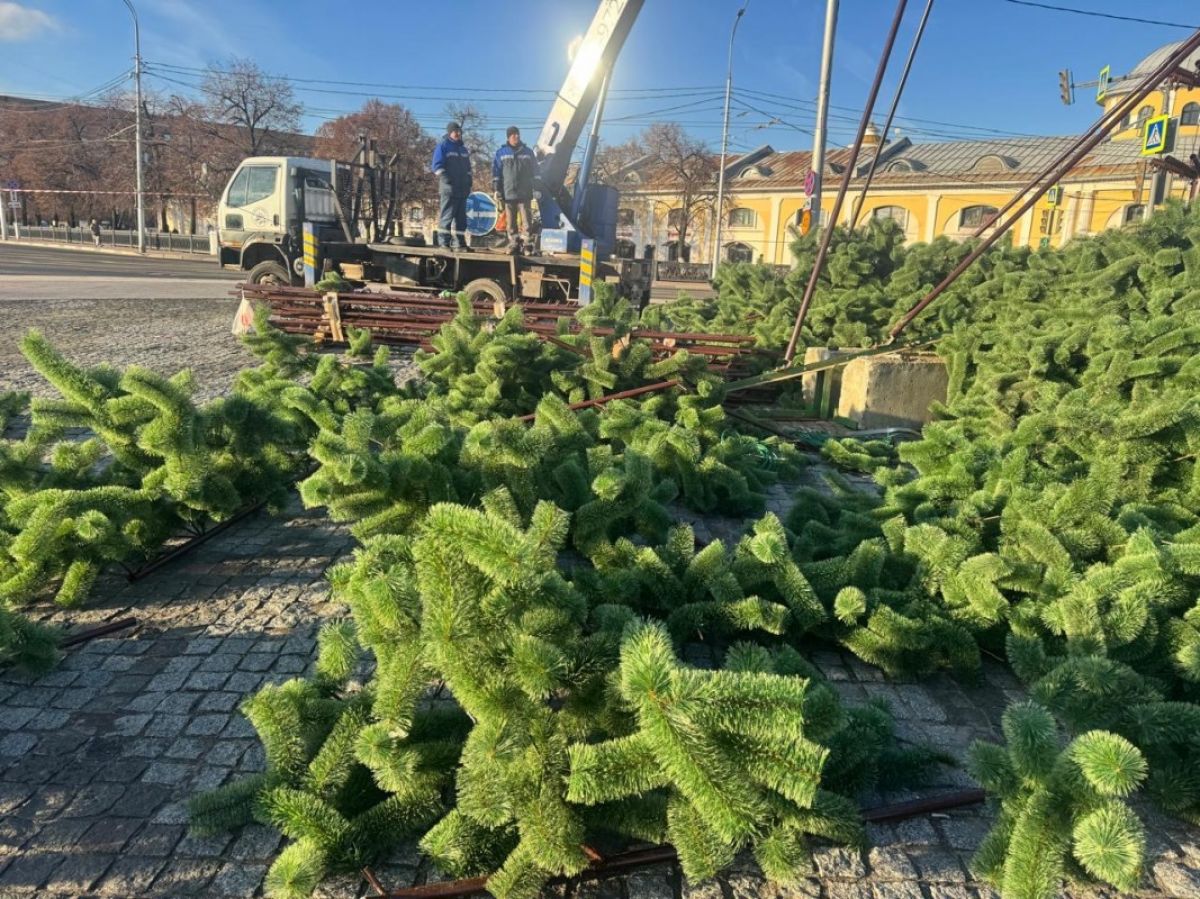 Рабочие сначала установят каркас в виде ствола, к нему прикрепят искусственные ветки, пространство вокруг елки оградят. Для установки используют специализированную технику.