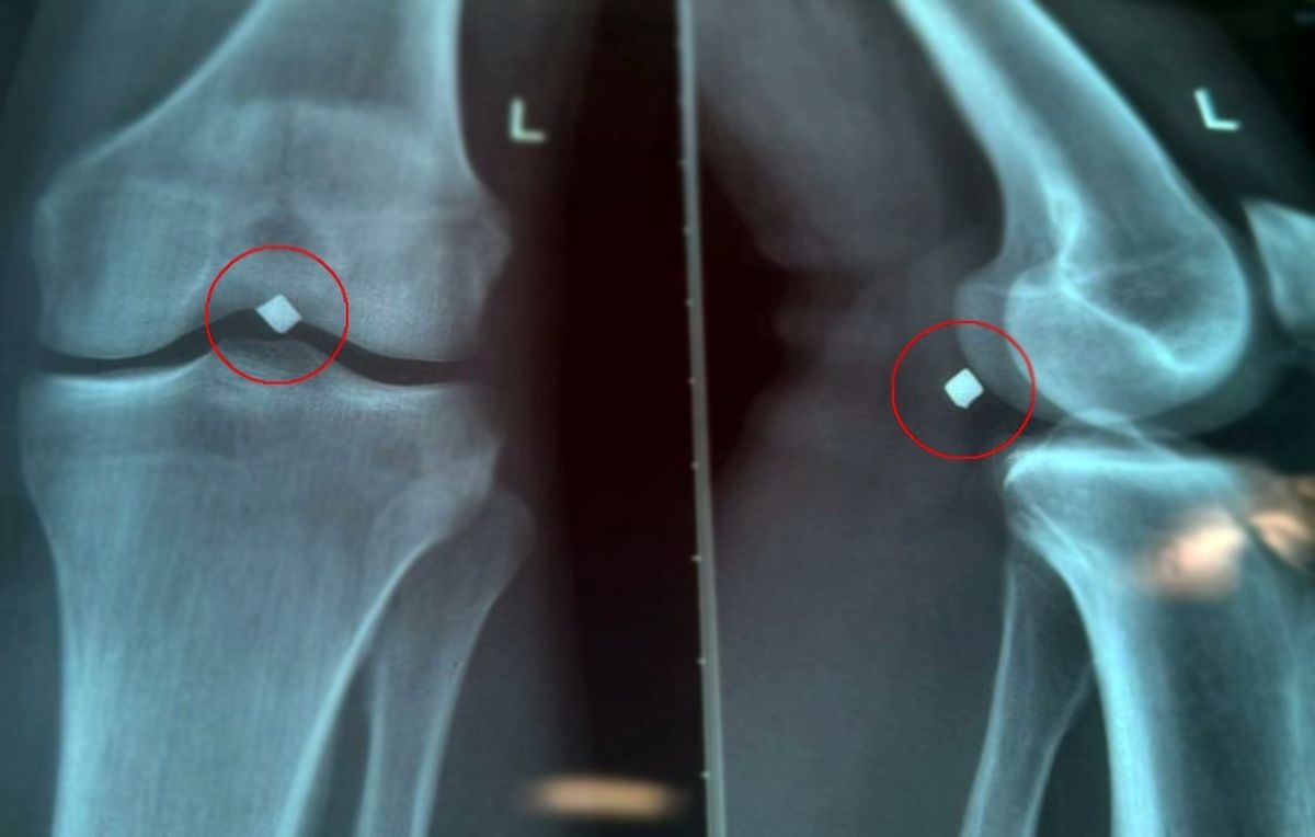 Один из пациентов - 22-летний парень. В июне 2025 года он получил серьезное ранение осколком - пробил надколенник насквозь, прошел через полость коленного сустава и застрял всего в паре миллиметров от крупного сосудисто-нервного пучка нижней конечности. Пациента беспокоили постоянные боли в области инородного тела. Осколок оказывал давление на нерв, вызывал стойкий дискомфорт и нарушение функции левой нижней конечности.