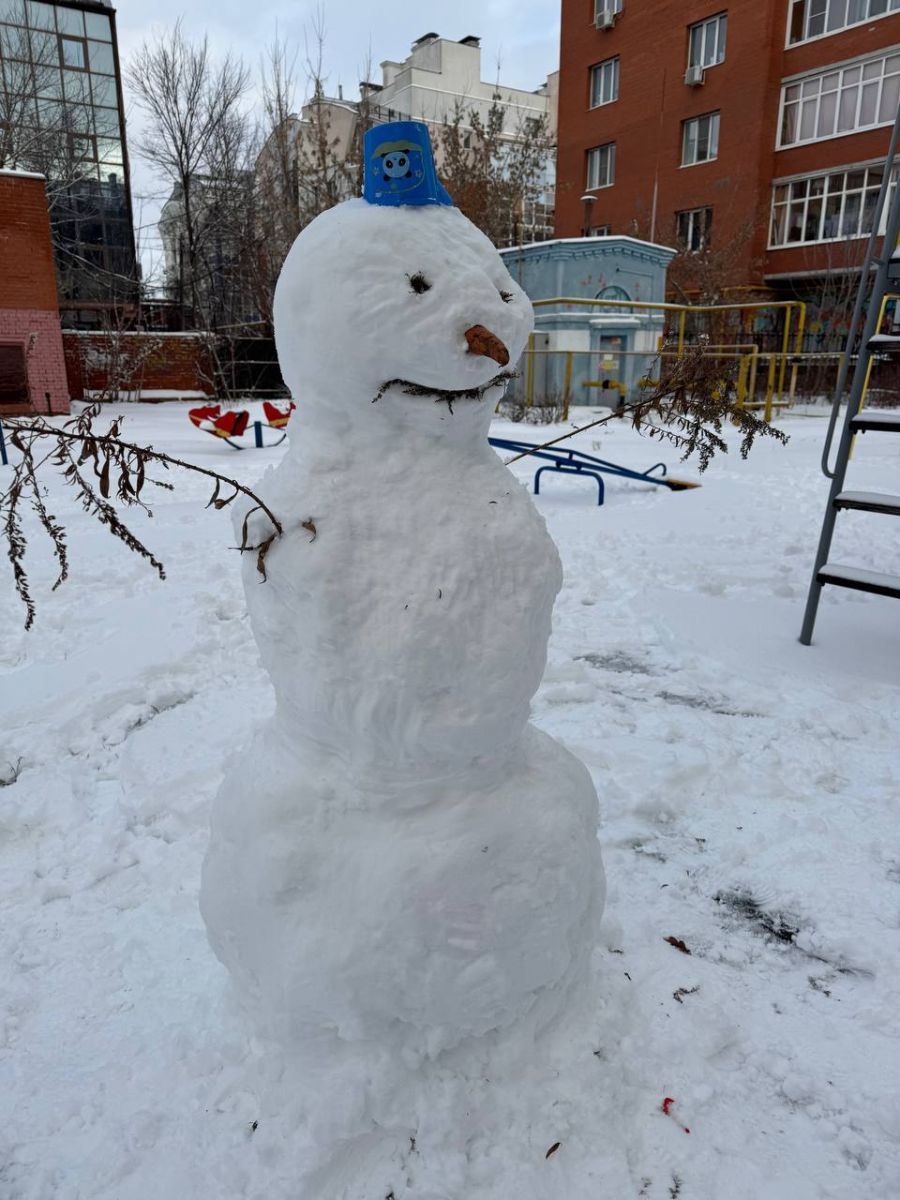 Во дворе дома 2 на улице Ленина появился классический, но не менее очаровательный снеговик.