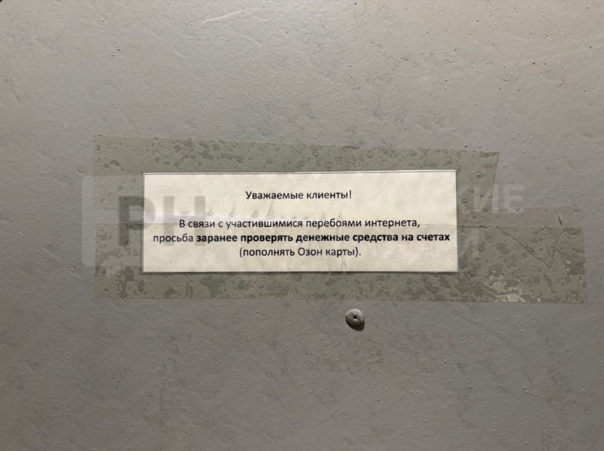 В пункте выдачи заказов OZON поблизости из-за перебоев интернета просят заранее переводить на счета средства для оплаты посылок.