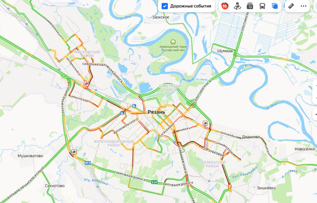 Десятибалльные пробки и ДТП парализовали движение в Рязани