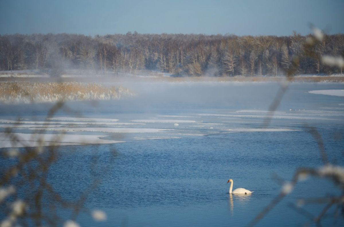 "На глади воды углядел большую белую птицу. Морозная зима лебедю явно к лицу, ну или к клюву", - пишет автор.