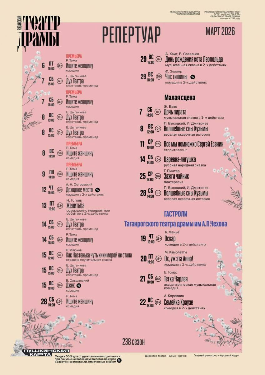 Рязанский драматический театр опубликовал репертуар на февраль 2026 года и сообщил о начале репетиций сразу двух новых спектаклей.