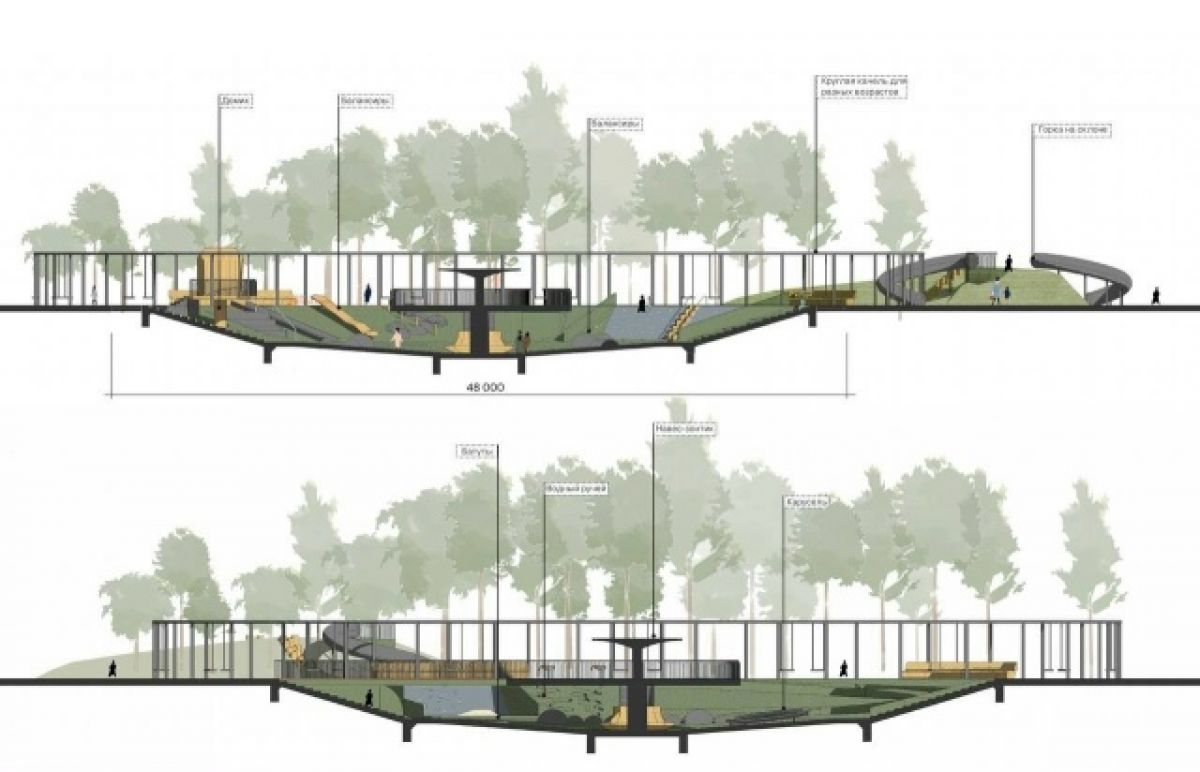 Кроме того, на прилегающей территории обустроят зону фуд-кортов, прокат велосипедов и туалеты, обновится оборудование на площадке для выгула собак, установят скамейки, светодиодные фонари и декоративную подсветку деревьев, озеленят территории.