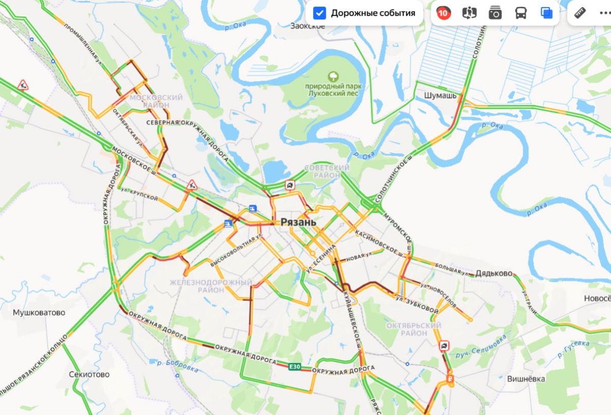 Ранним утром в Рязани образовались десятибалльные пробки на дорогах. Это следует из сервиса «Яндекс. карты».