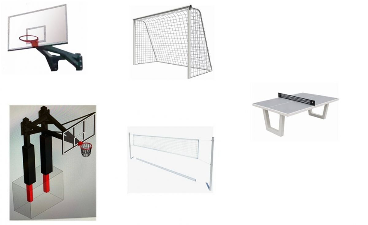 - спортивной зоны: покрытия для активных игр, площадка для спортивных игр, столы для настольного тенниса,