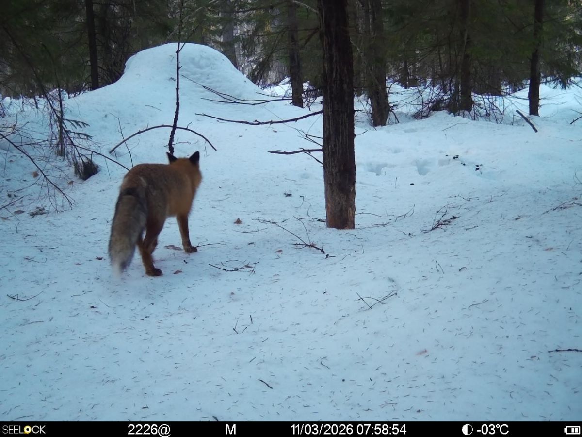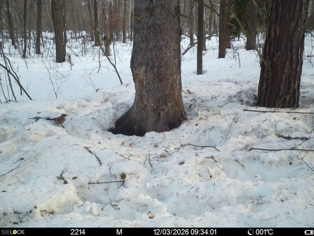В этот раз запечатлеть удалось кабанов, лис, лосей, большого пёстрого дятла и сойку.