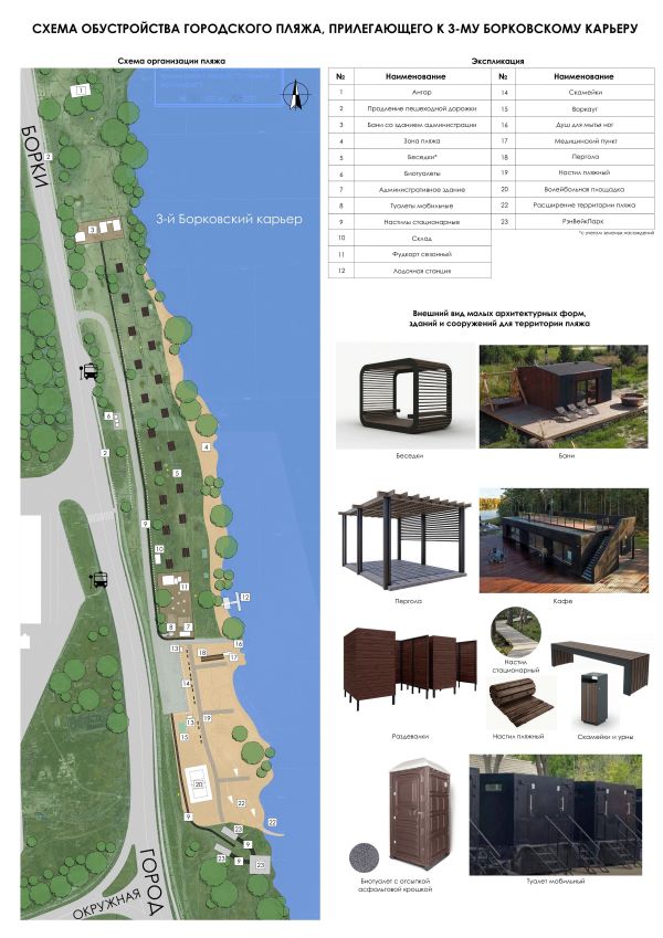 Депутатам сообщили, что городские пляжи будут приведены к единому стилю оформления. В качестве примера на комитете представили концепцию для 3-го Борского карьера. Если идея понравится, то и другие места отдыха у воды приведут в аналогичное состояние.