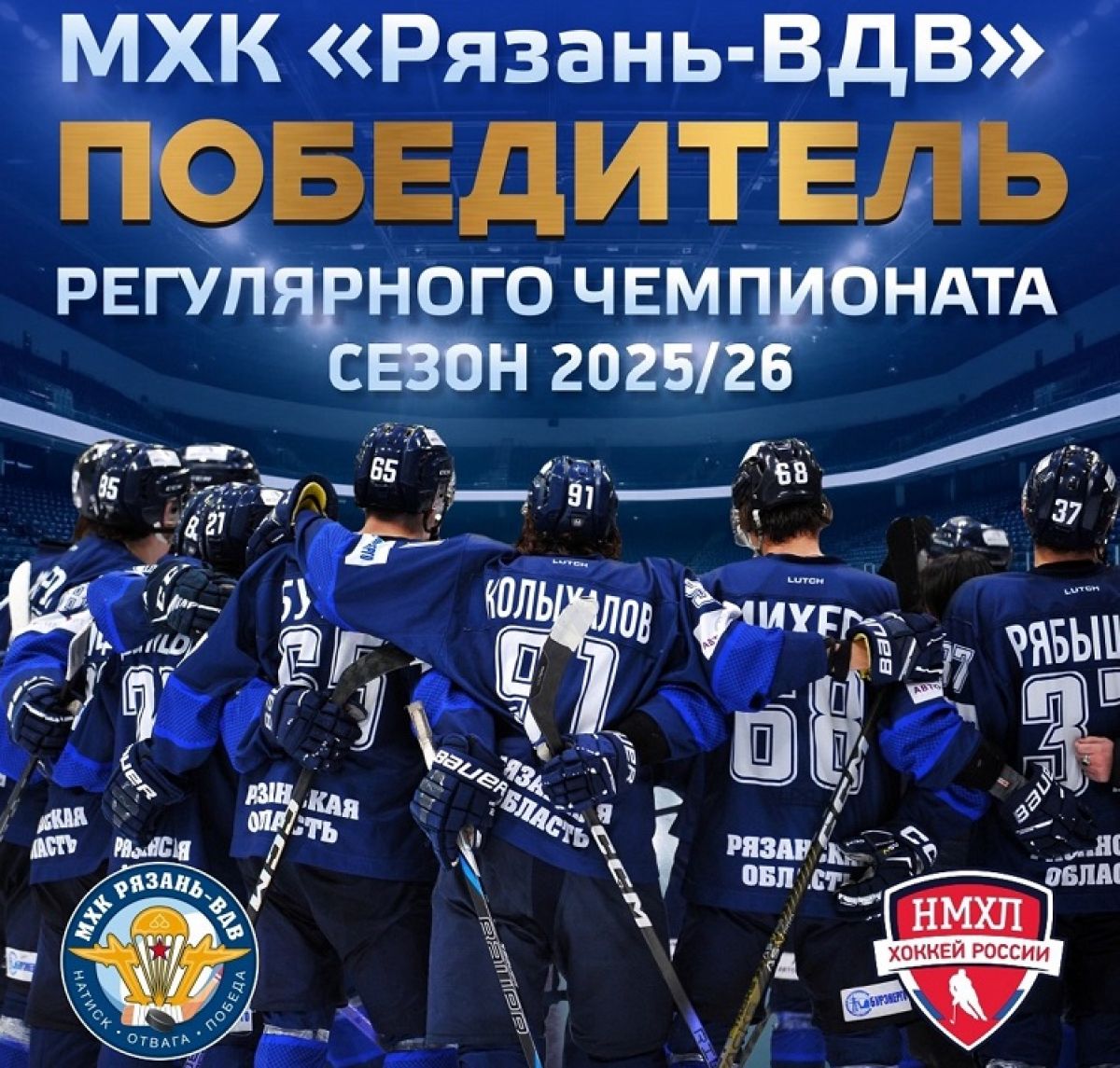 Хоккеисты "Рязани-ВДВ" провели 34-матчевую (!) победную серию и завершили регулярный чемпионат на первой строчке турнирной таблицы Восточной конференции НМХЛ.