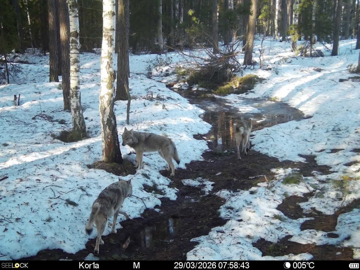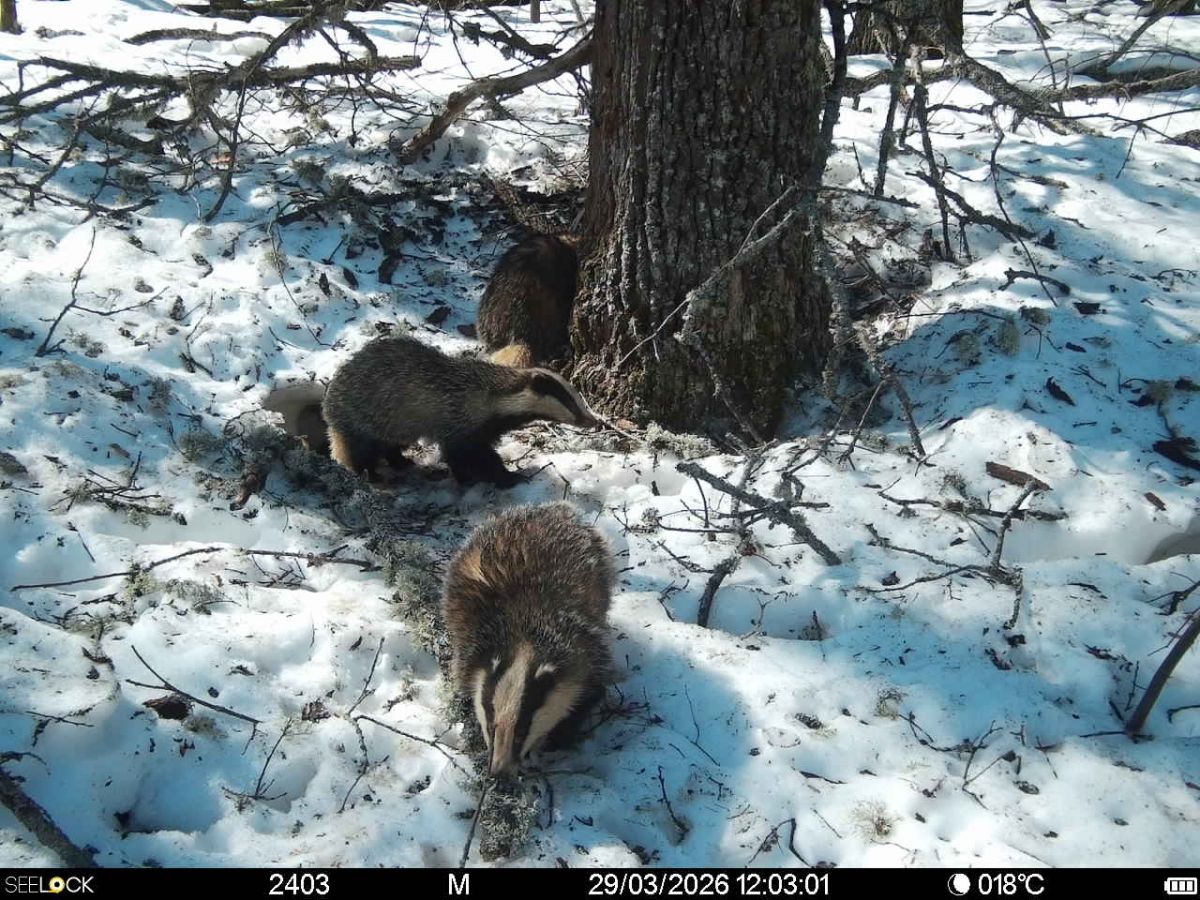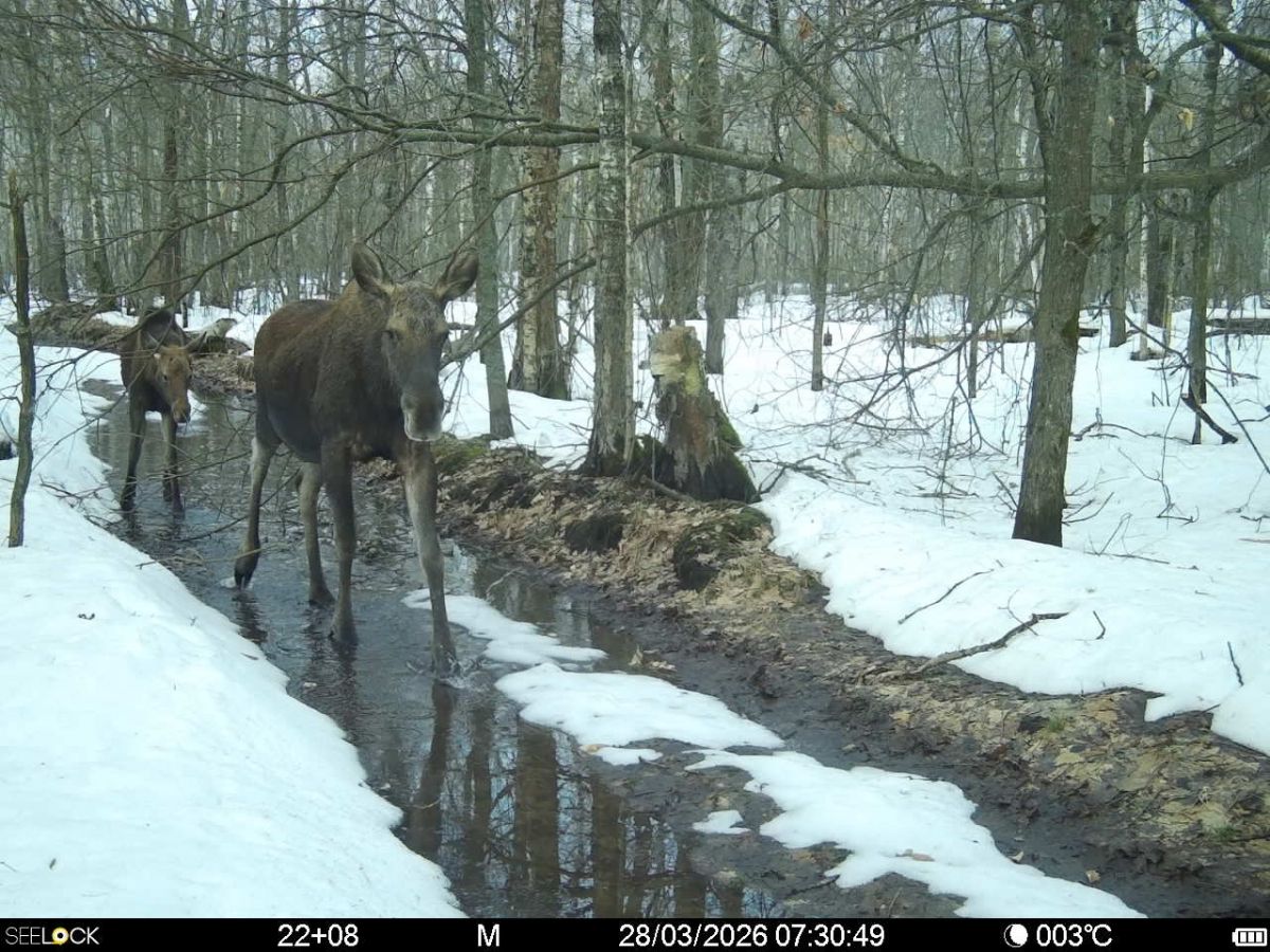 Однако в некоторых местах все еще видны сугробы. В эти выходные в объектив камер попались бобр, барсуки, лиса, лоси и волки.