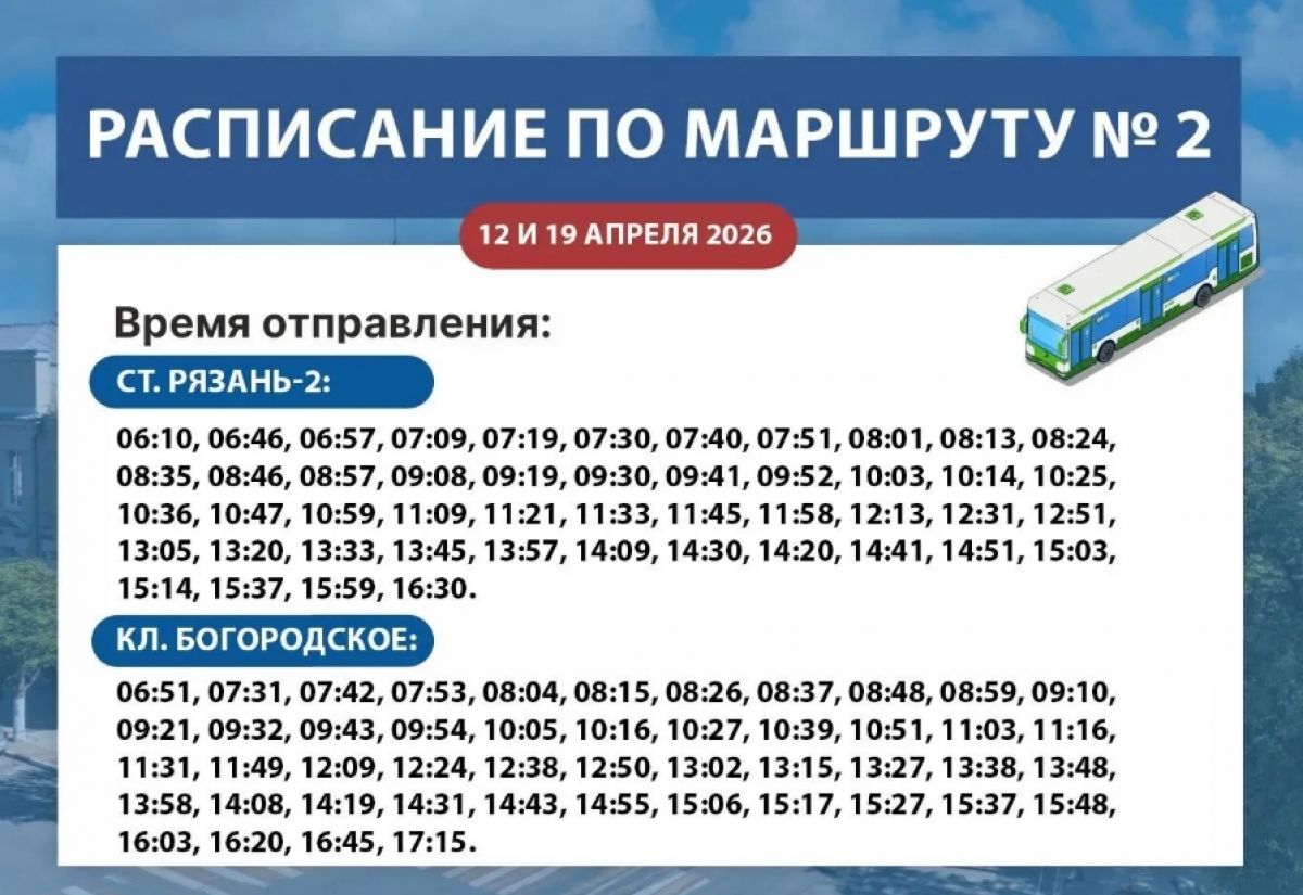 19 апреля автобусы маршрута номер 2 будут ходить по расписанию, представленному на карточке.
