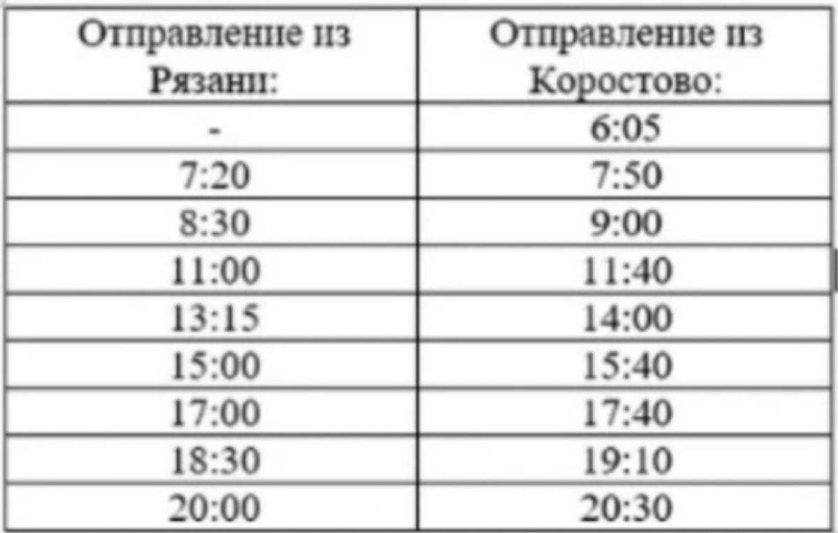 С 28 апреля автобус Рязань-Коростово возвращается к прежнему расписанию движения