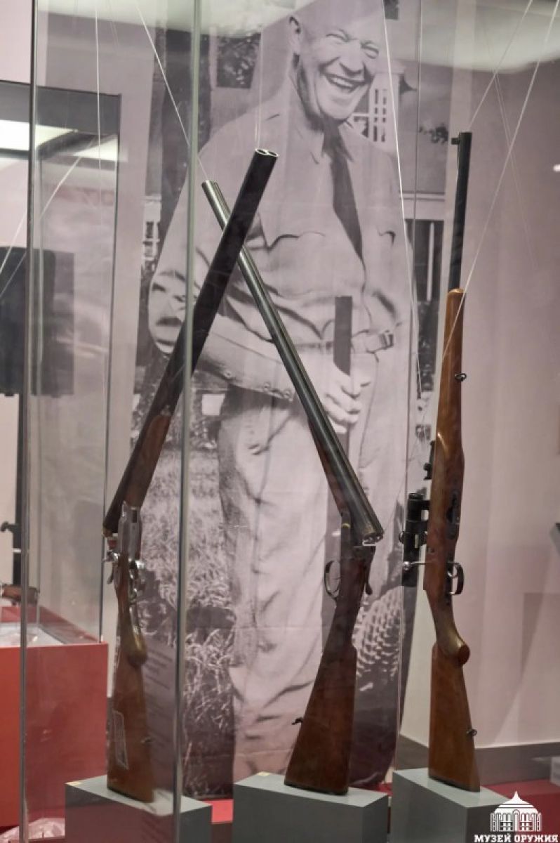 Центральное место в разделе, посвящённом охотничьей стихии, занимает уникальный экспонат - ружьё, изготовленное тульскими мастерами для И.В. Сталина в 1948 году. Этот раритет из собрания Государственного музея современной истории России является живым свидетельством преемственности традиций.