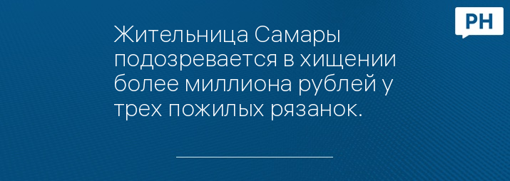 Жительница города Самары подозревается в хищении сбережений у трех престарелых рязанок на сумму более 1,5 млн рублей.