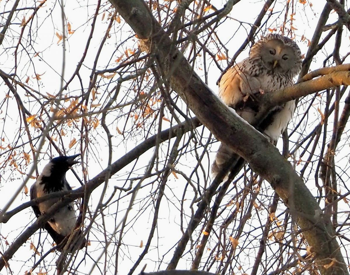 В Рязани неясыть целый день держала в когтях пойманную крысу на дереве
