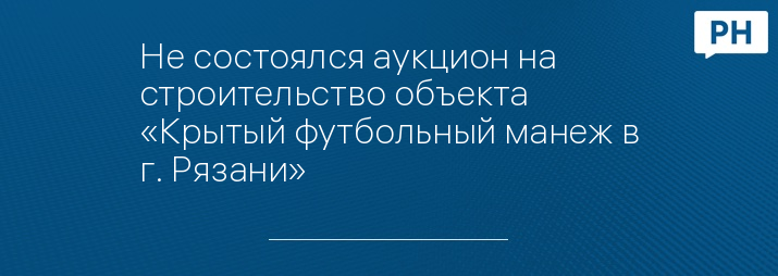 Не состоялся аукцион на строительство объекта «Крытый футбольный манеж в г. Рязани»