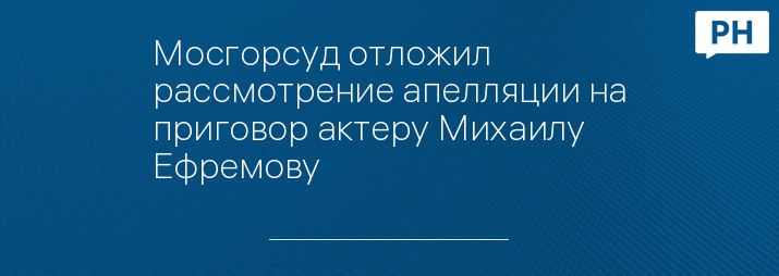 Мосгорсуд отложил рассмотрение апелляции на приговор актеру Михаилу Ефремову