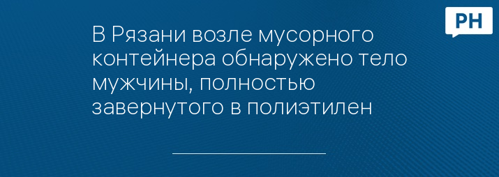 В Рязани возле мусорного контейнера обнаружено тело мужчины, полностью завернутого в полиэтилен