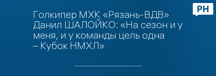Голкипер МХК «Рязань-ВДВ» Данил ШАЛОЙКО: «На сезон и у меня, и у команды цель одна – Кубок НМХЛ»